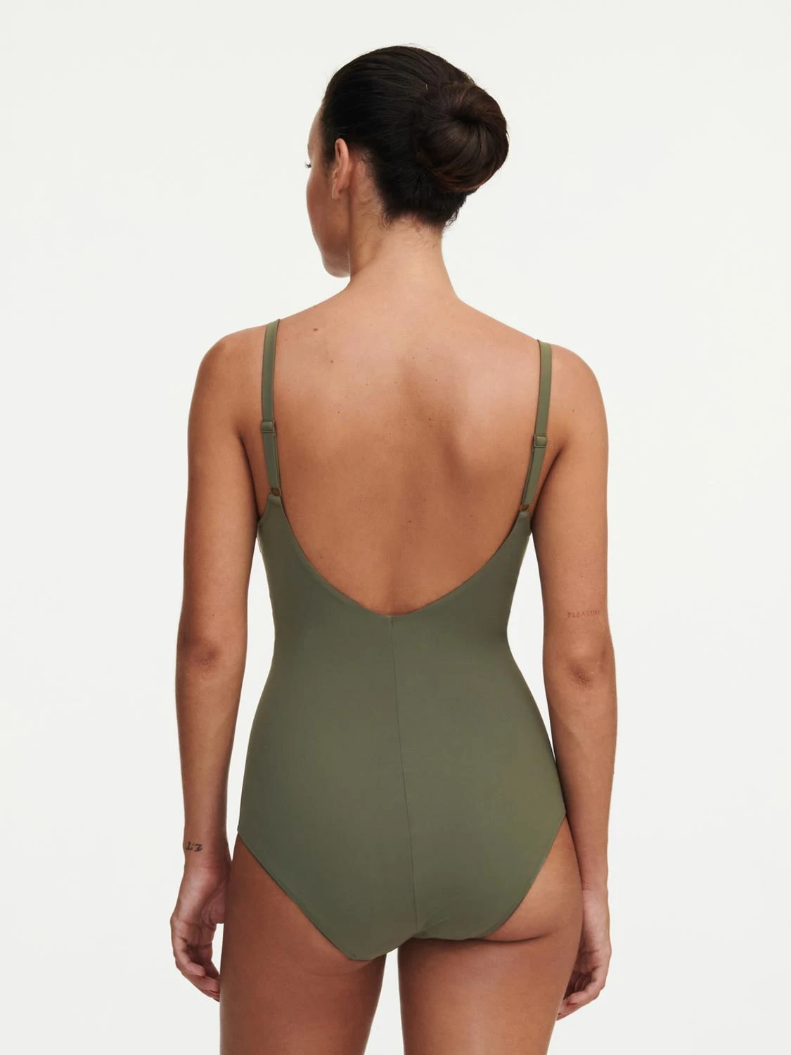 Badeanzug von Chantelle mit einem nahtlosen Ausschnitt und verstellbaren Riemen und Schmuckelementen an den Trägern.